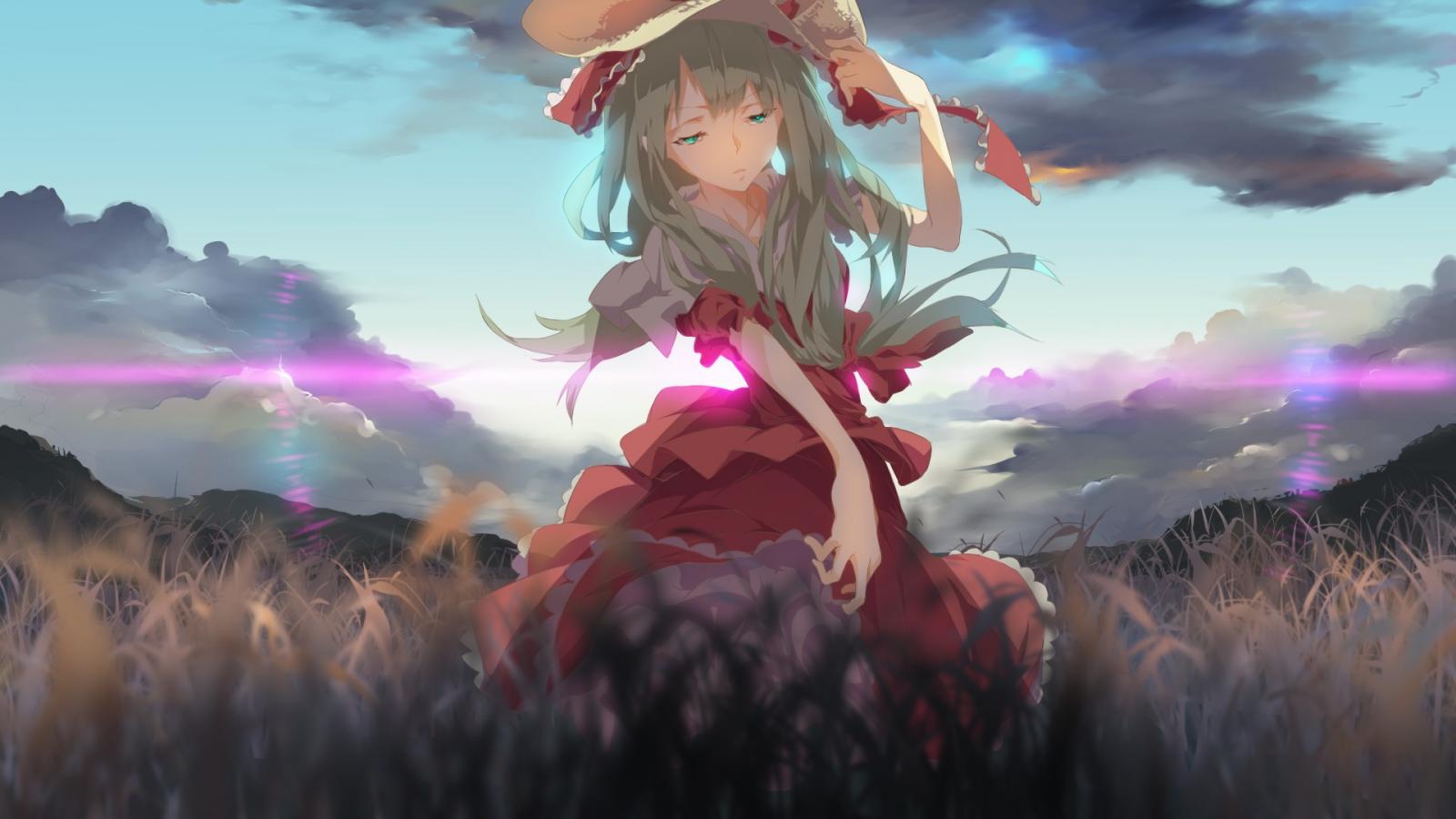 Wallpaper The girl in the hat is on the field, anime Kagiyama Hina