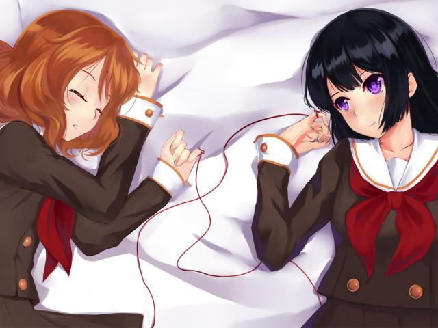 Wallpaper The girls are sleeping in bed anime game, Euphonium