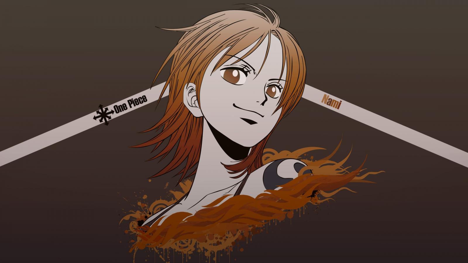 Wallpaper Nami anime big score on a brown background