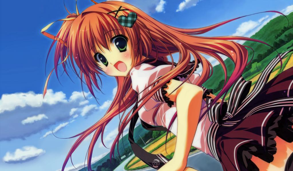 Wallpaper Red-haired girl anime Bridge at the starry sky