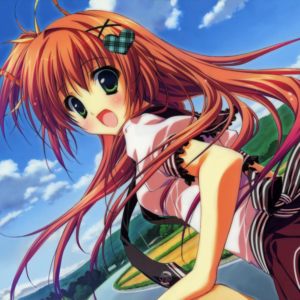 Wallpaper Red-haired girl anime Bridge at the starry sky