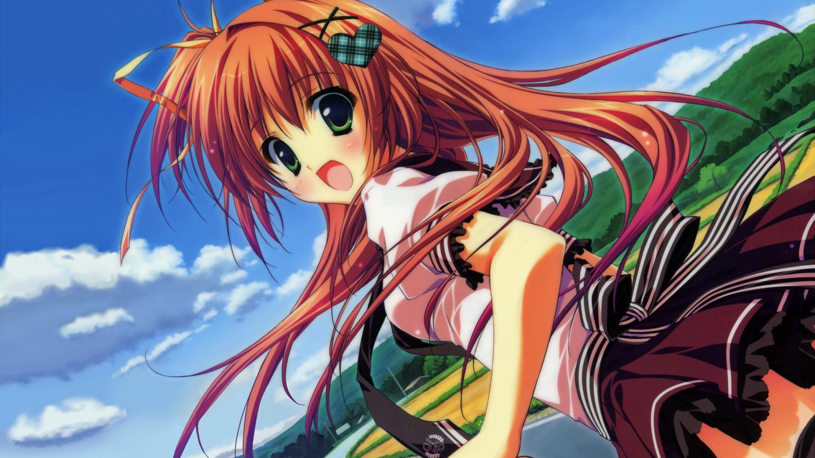 Wallpaper Red-haired girl anime Bridge at the starry sky