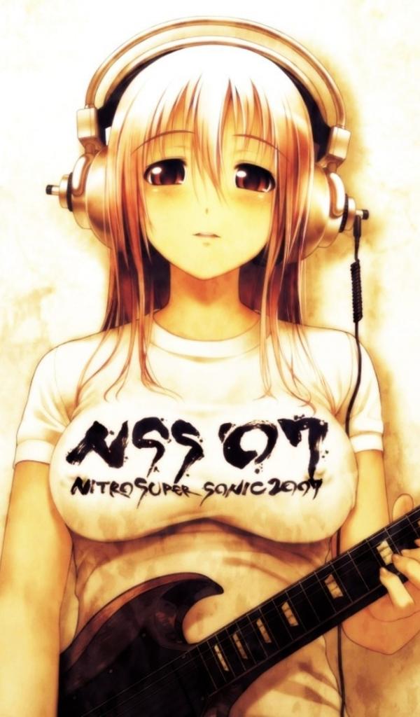 Wallpaper Super Sonic, Anime girl with guitar