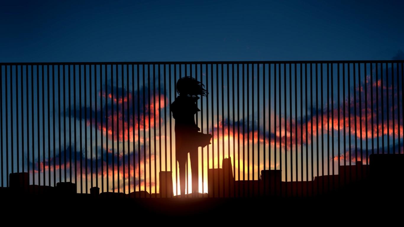 Wallpaper Anime girl on the roof watching the sunset