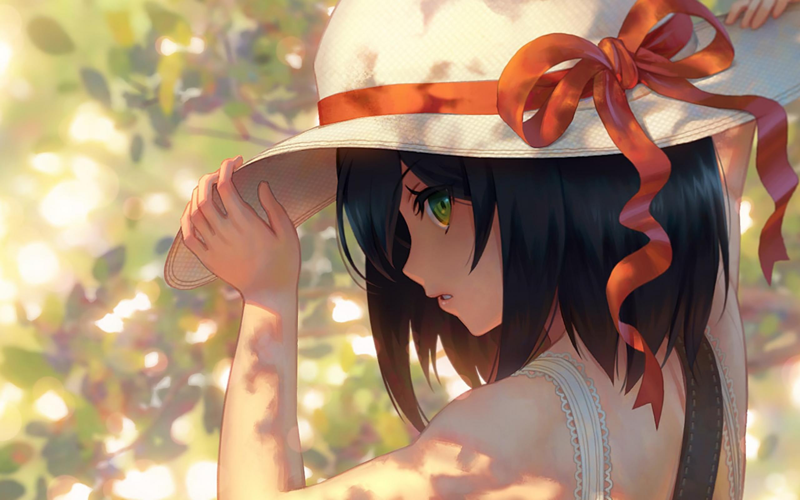 Wallpaper Anime girl in a hat with a red bow