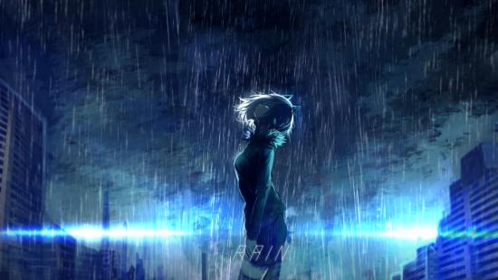 Wallpaper anime girl in the rain