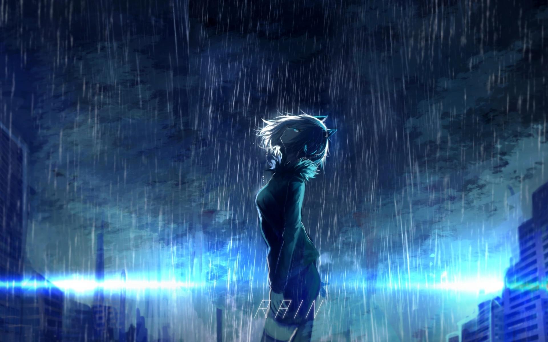 Wallpaper anime girl in the rain