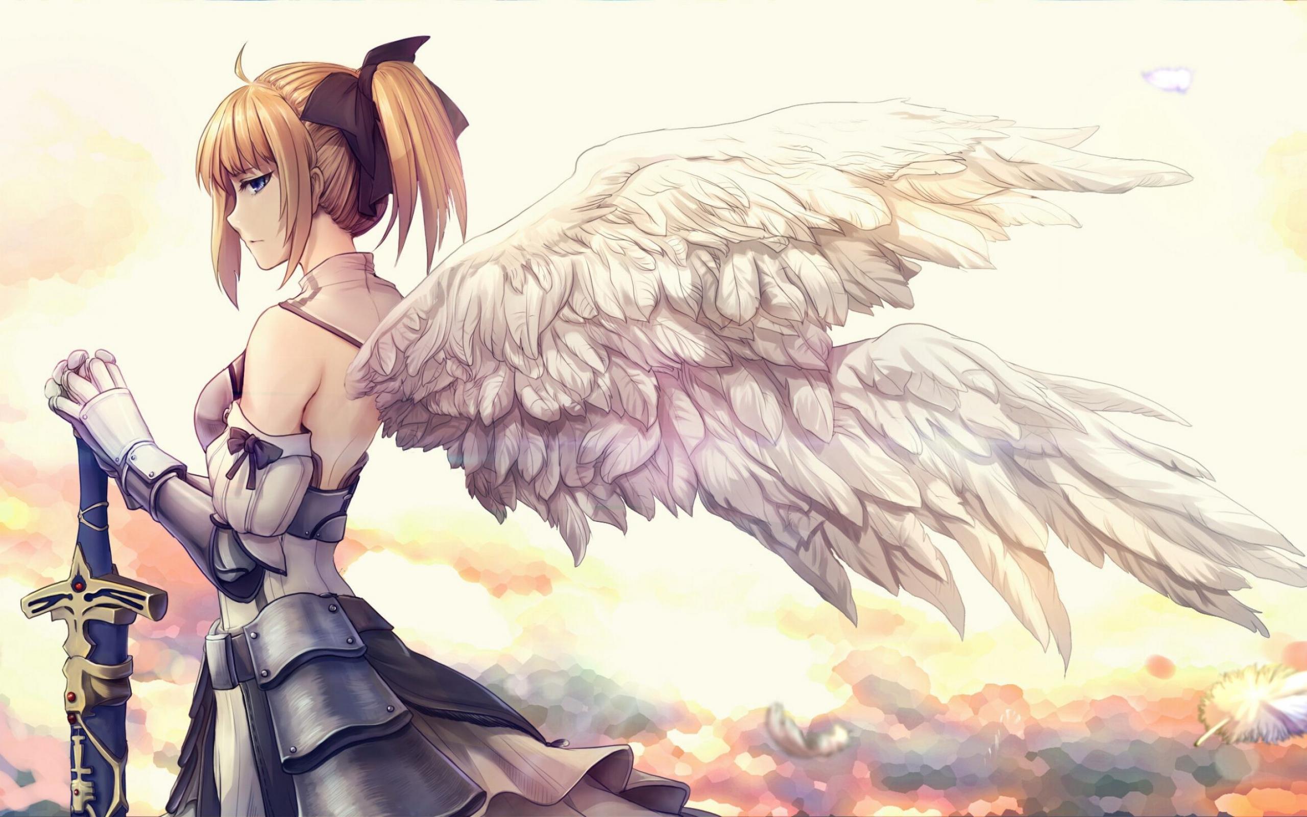 Wallpaper Anime girl with white angel wings