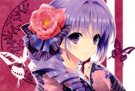 Wallpaper Anime girl in kimono and a big red flower in her hair