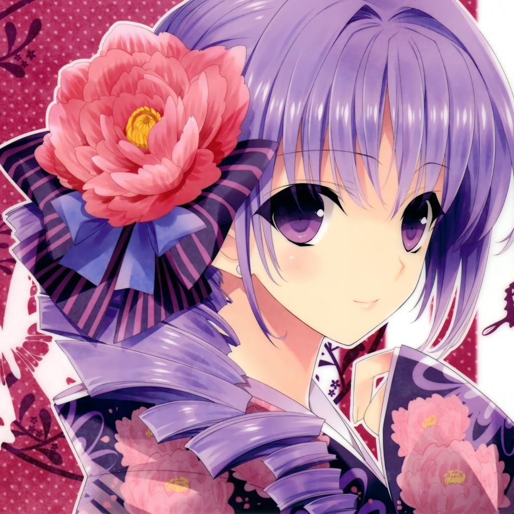 Wallpaper Anime girl in kimono and a big red flower in her hair