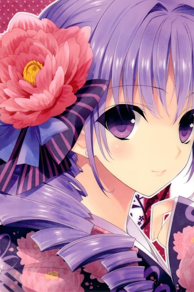 Wallpaper Anime girl in kimono and a big red flower in her hair