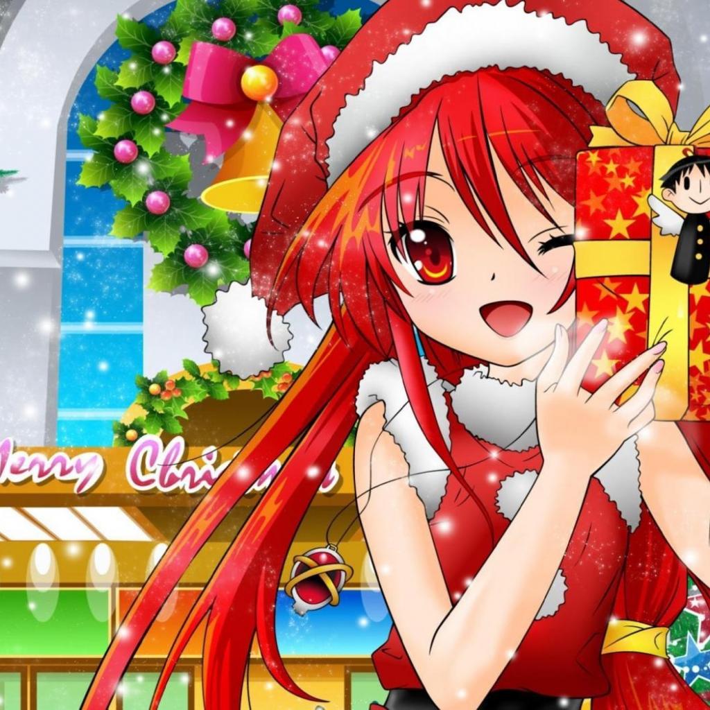 Wallpaper Anime girl with a Christmas gift