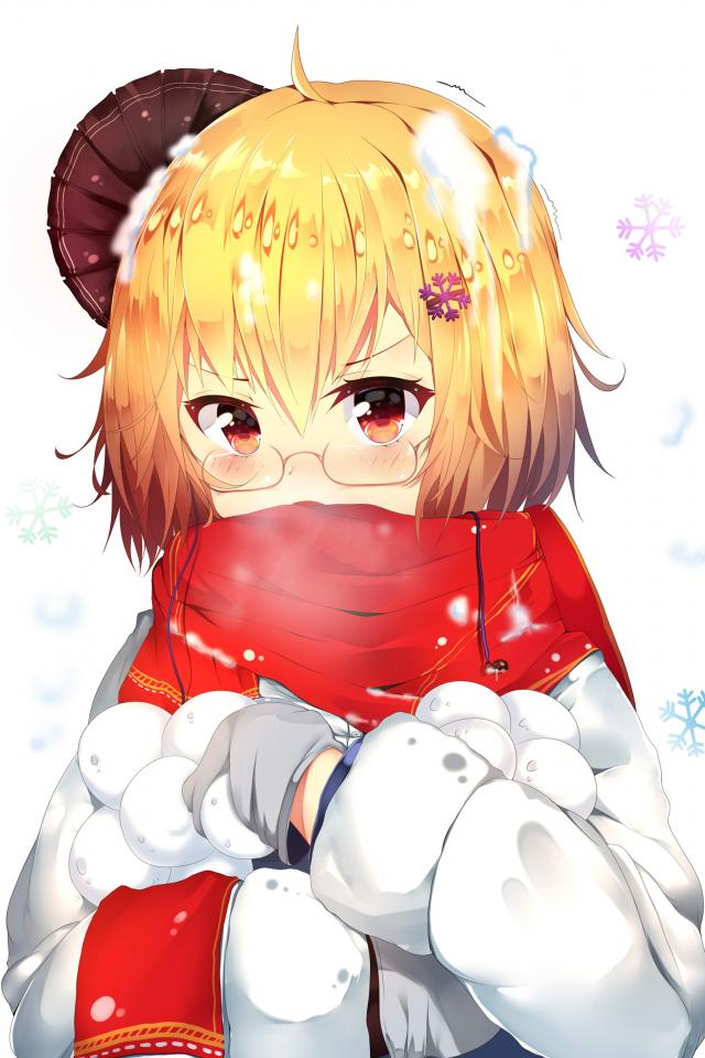 Wallpaper Anime girl with snowballs in hands on a white background
