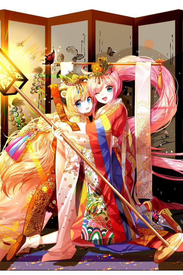 Wallpaper Two girls in costumes, anime Vocaloid