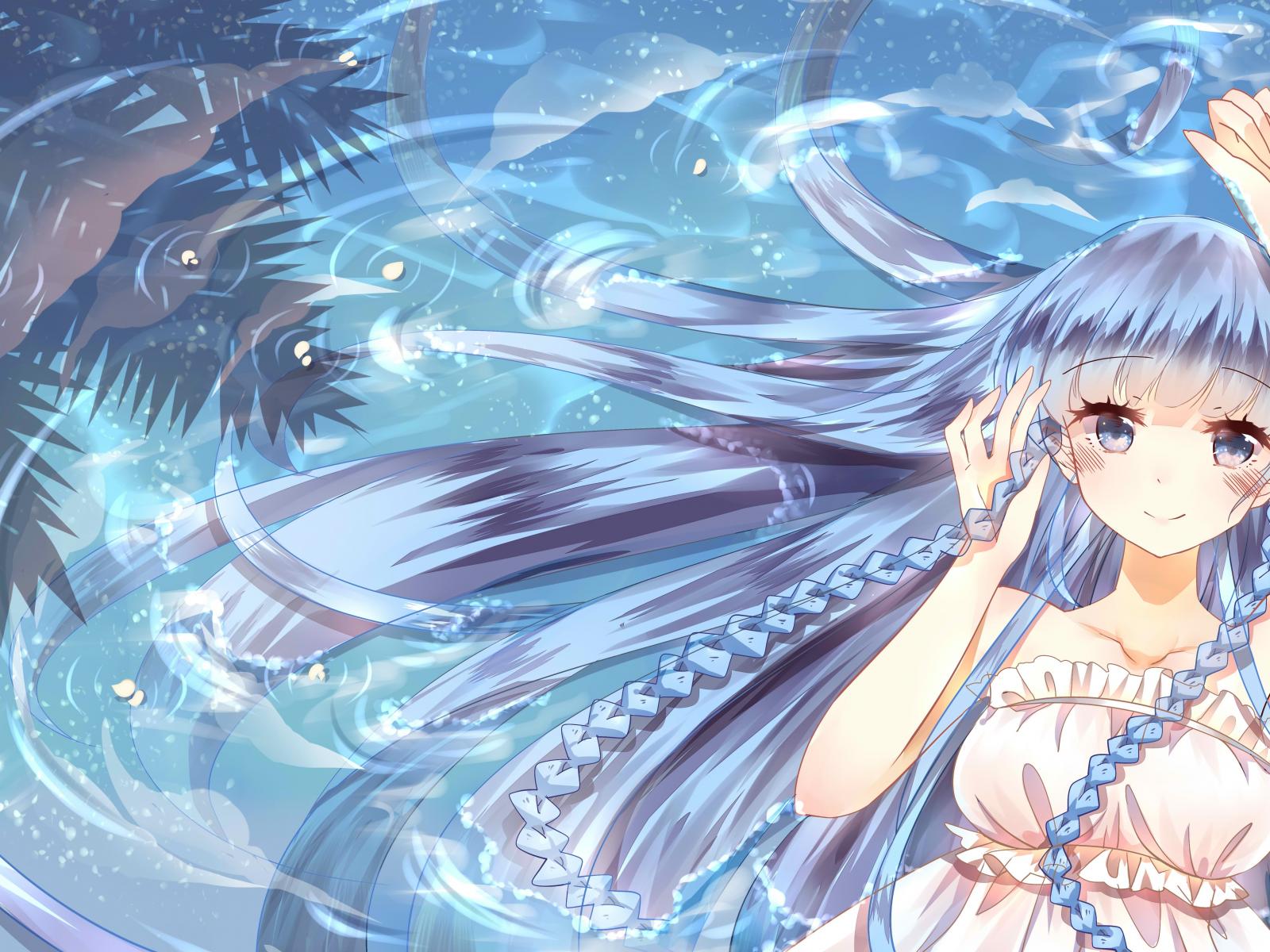 Wallpaper Anime girl with long hair in the water