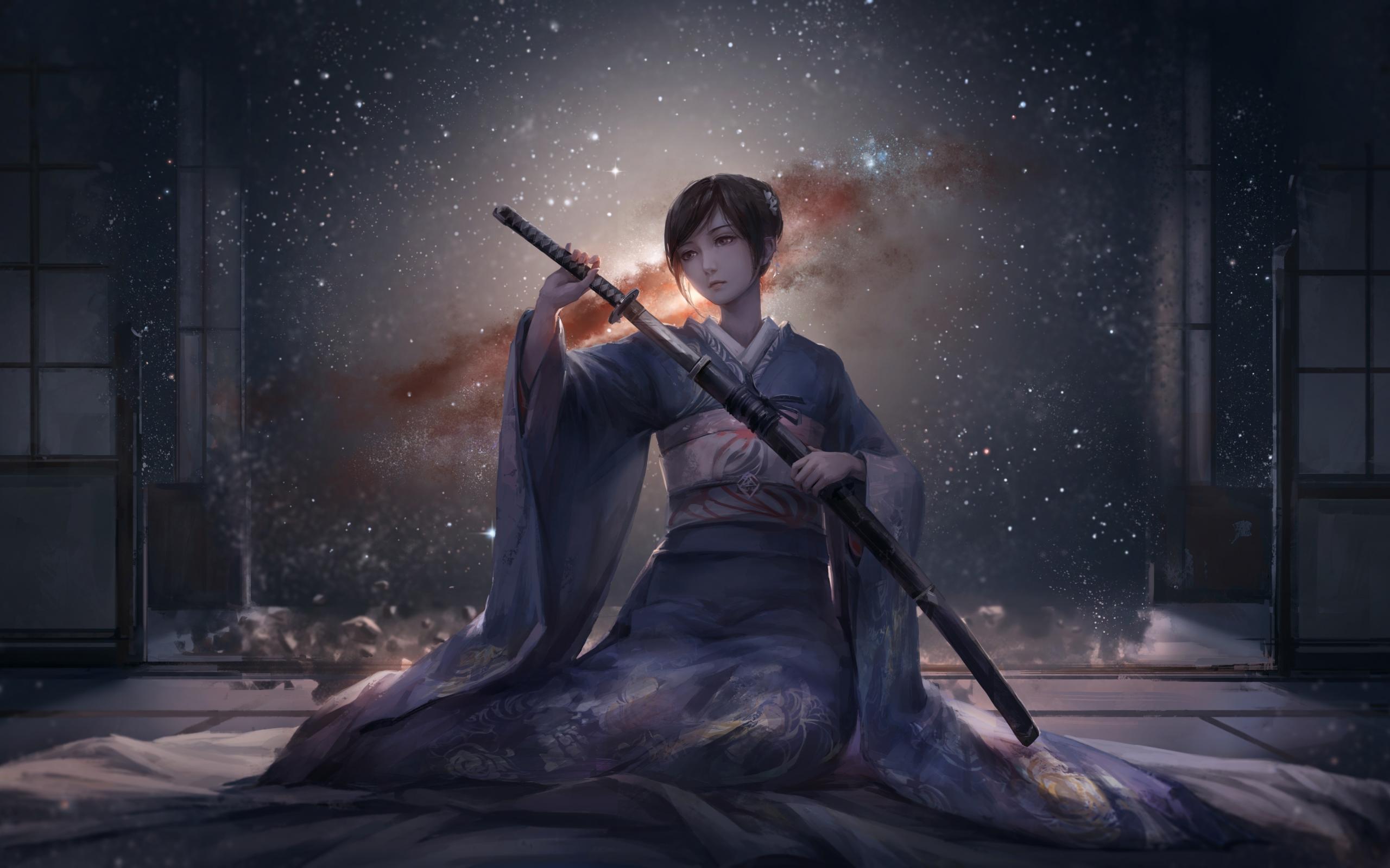Wallpaper Girl with a samurai sword, anime