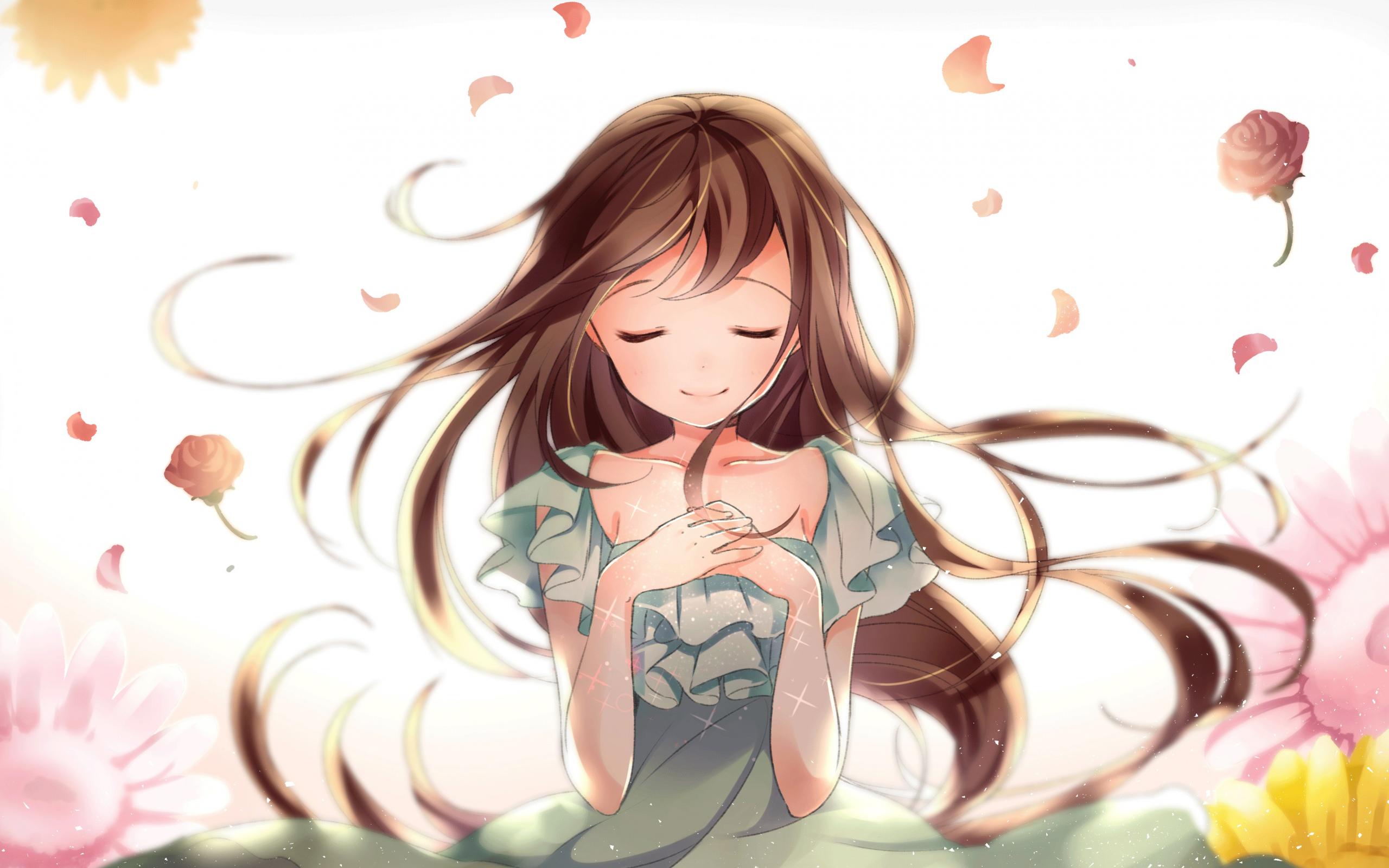 Wallpaper Beautiful anime girl with closed eyes