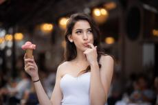 Wallpaper Beautiful red-haired anime girl with a rose in hand