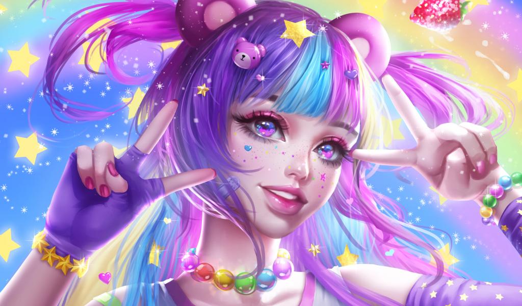 Wallpaper Bright colors on the face and hair of a girl