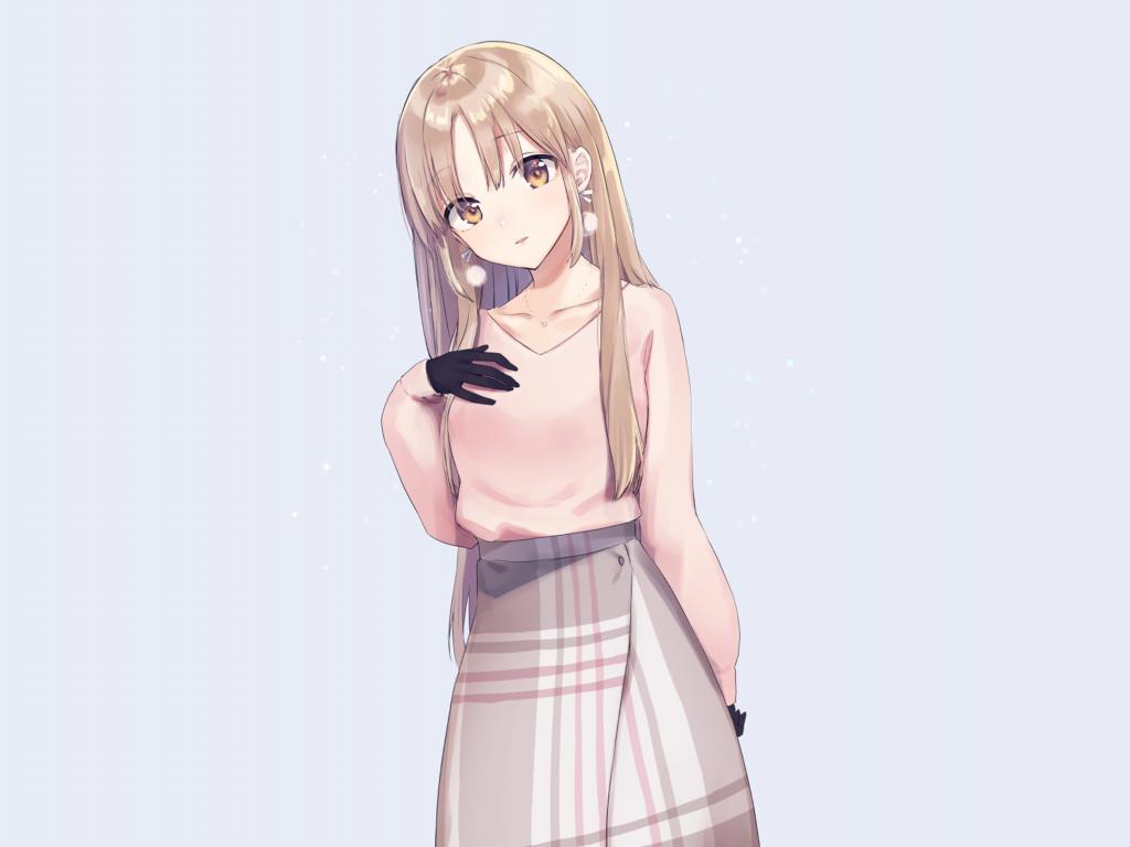 Wallpaper Beautiful anime girl in a pink sweater