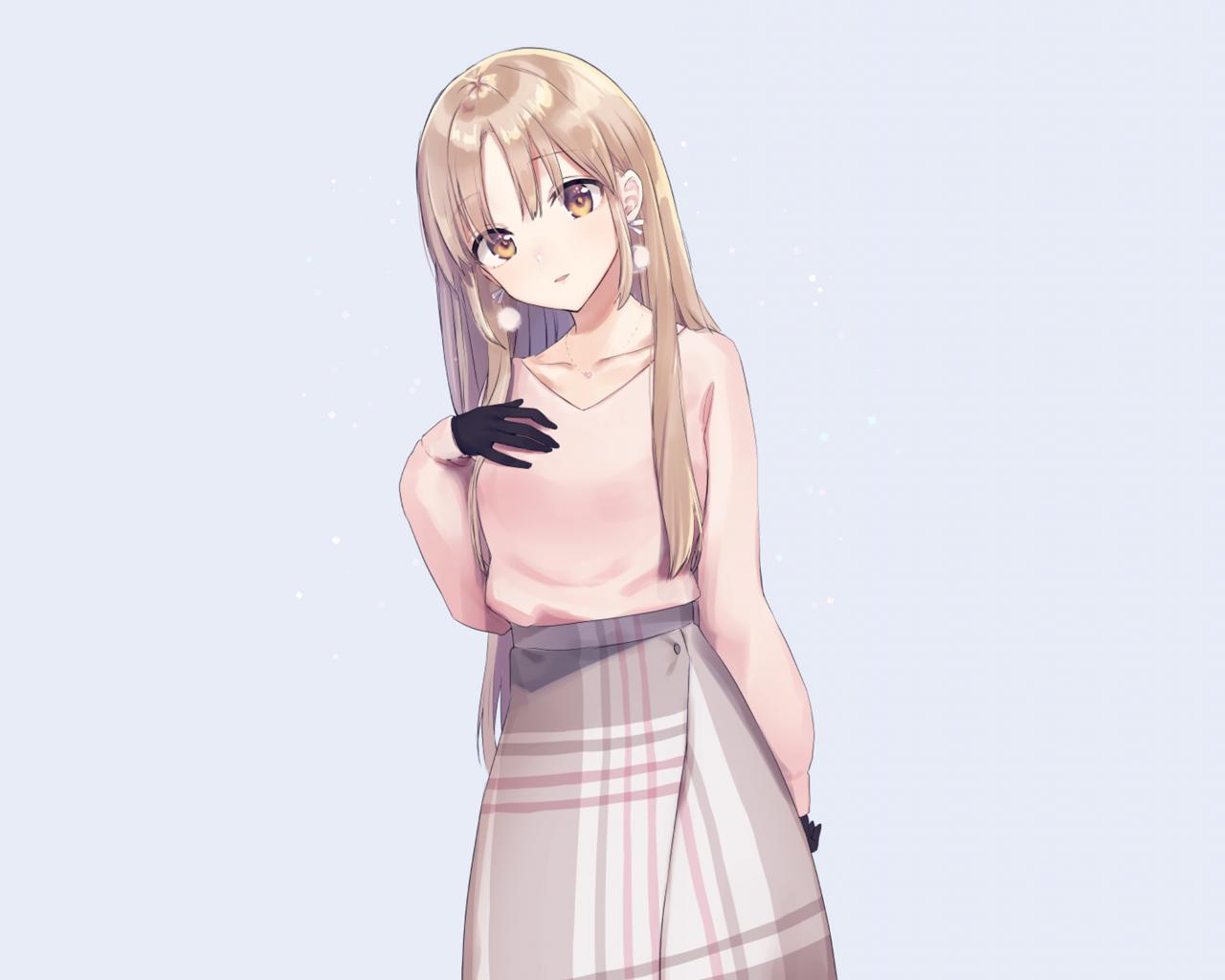 Wallpaper Beautiful anime girl in a pink sweater