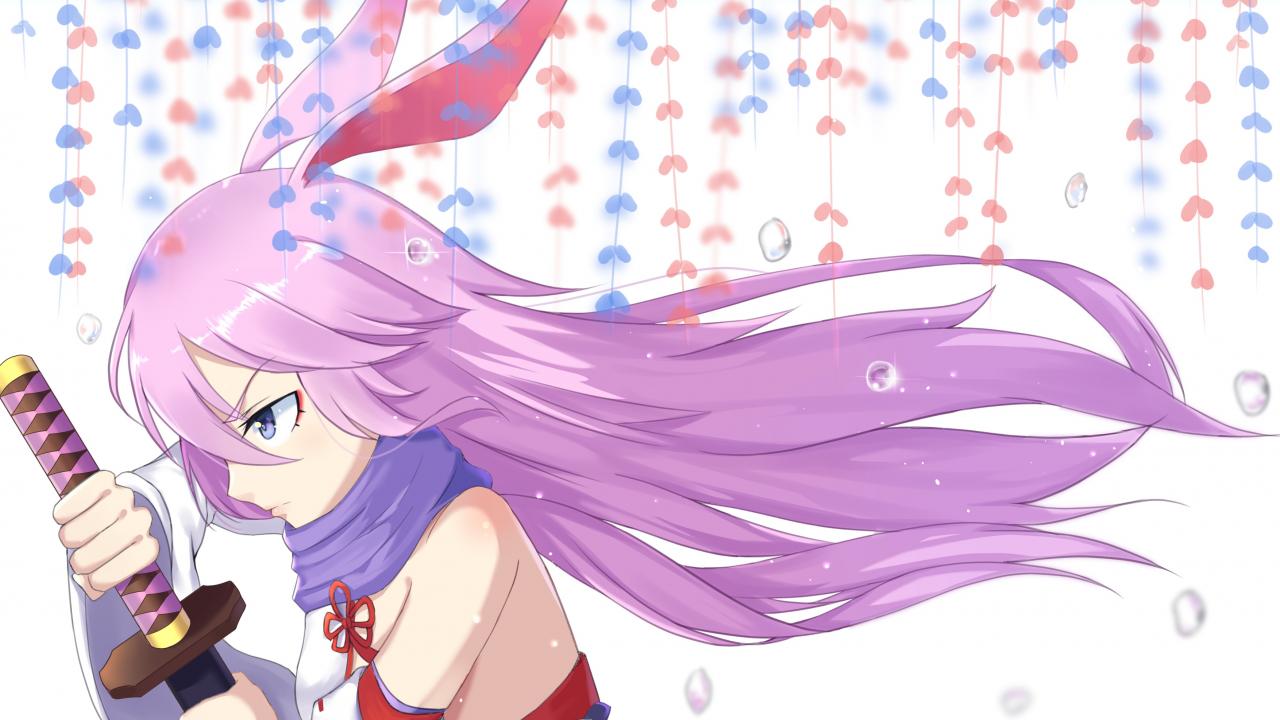 Wallpaper Anime girl with lilac hair and a sword in his hands