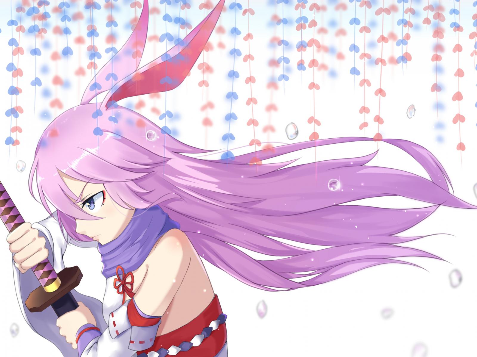 Wallpaper Anime girl with lilac hair and a sword in his hands