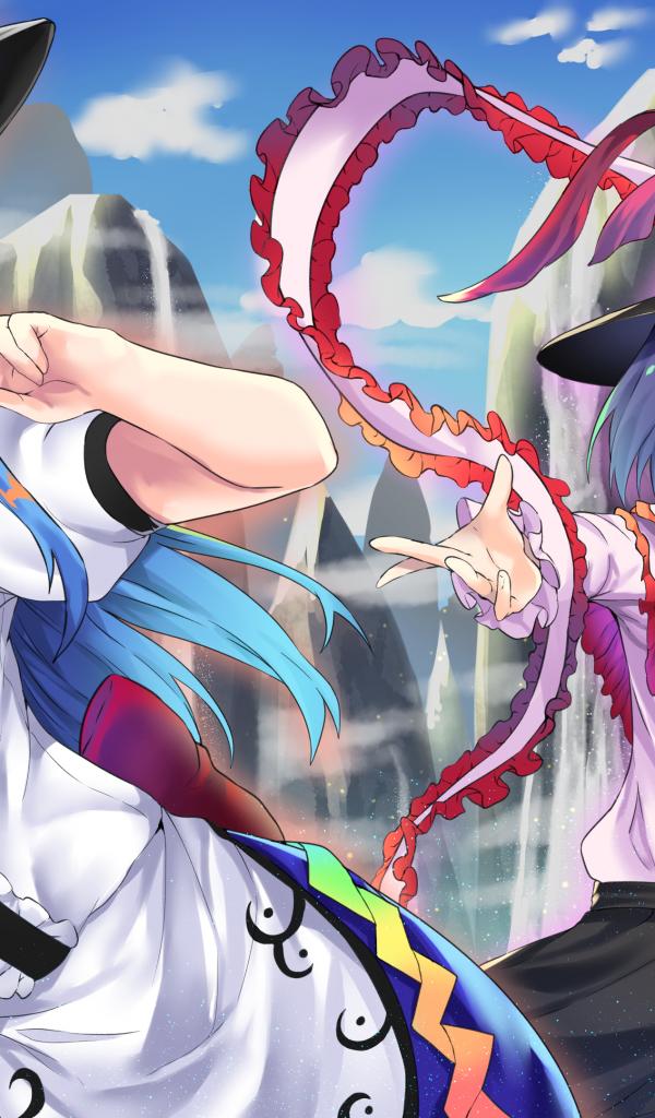 Wallpaper Two girls Iku Nagae and Tensi Hinanavi characters of Tojo anime