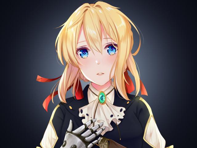 Wallpaper Anime girl Violet Evergarden on a gray background