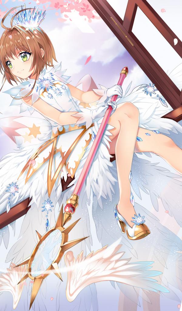 Wallpaper Character Sakura Kinomoto on the anime window Sakura Gatherer cards