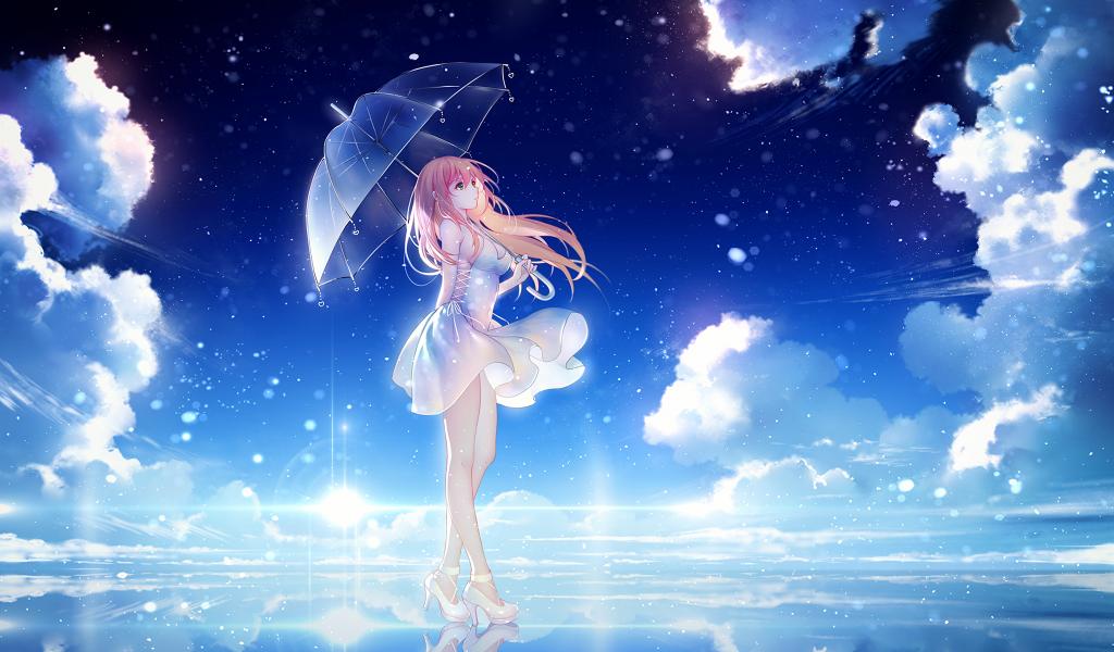 Wallpaper Beautiful anime girl under an umbrella against the sky