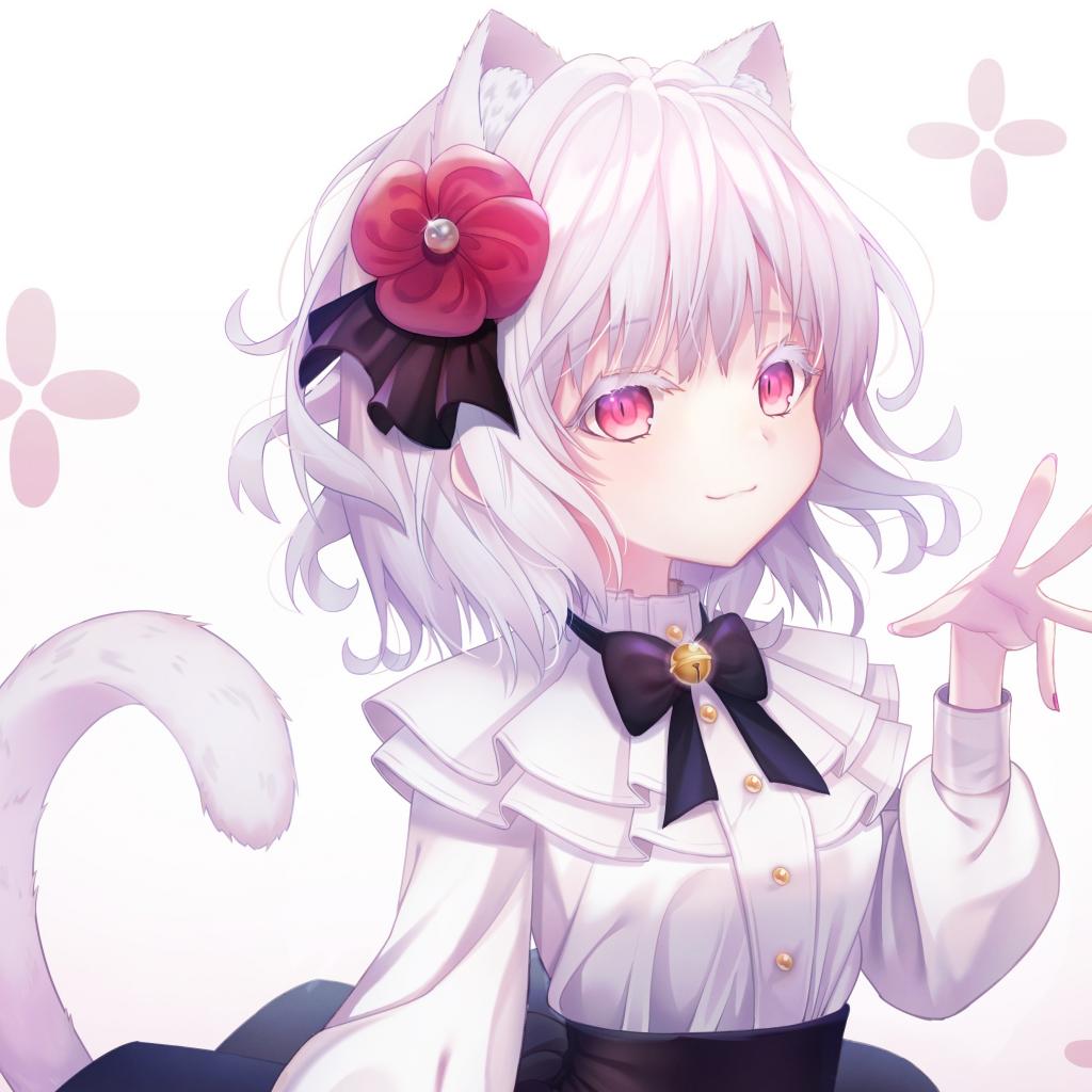 » Wallpaper Anime cat girl with a flower in her hair