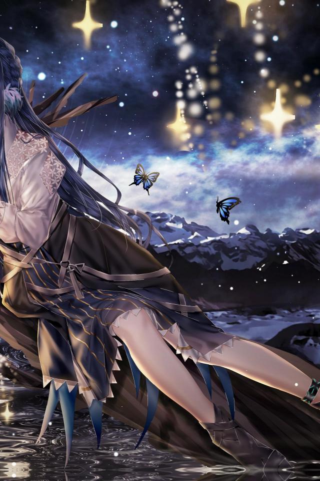 Wallpaper Beautiful anime girl lies on a tree near the water