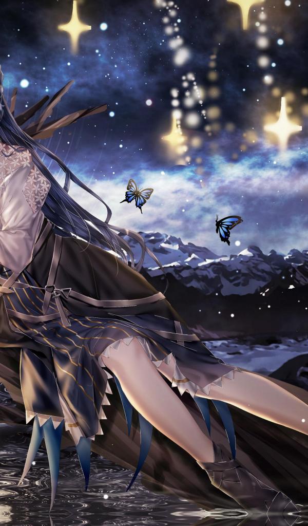 Wallpaper Beautiful anime girl lies on a tree near the water