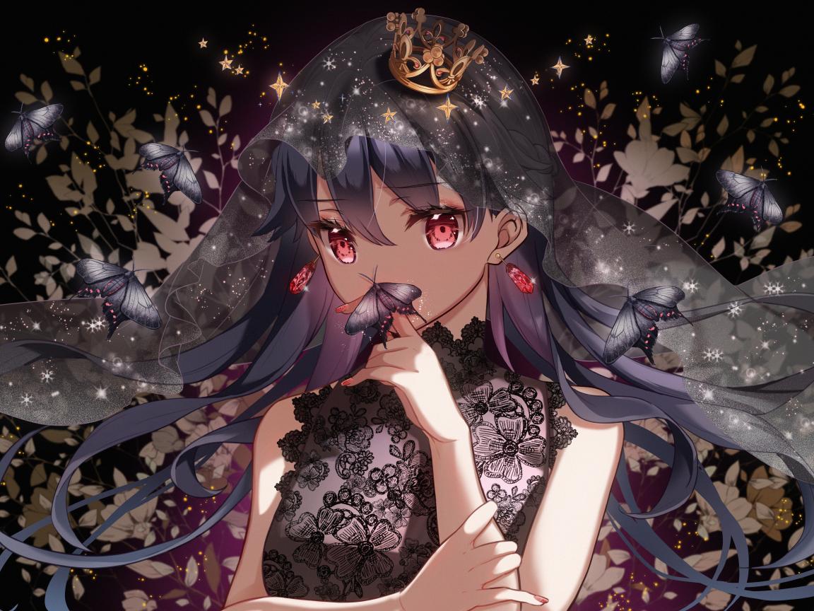 Wallpaper Beautiful anime girl with a butterfly on her finger