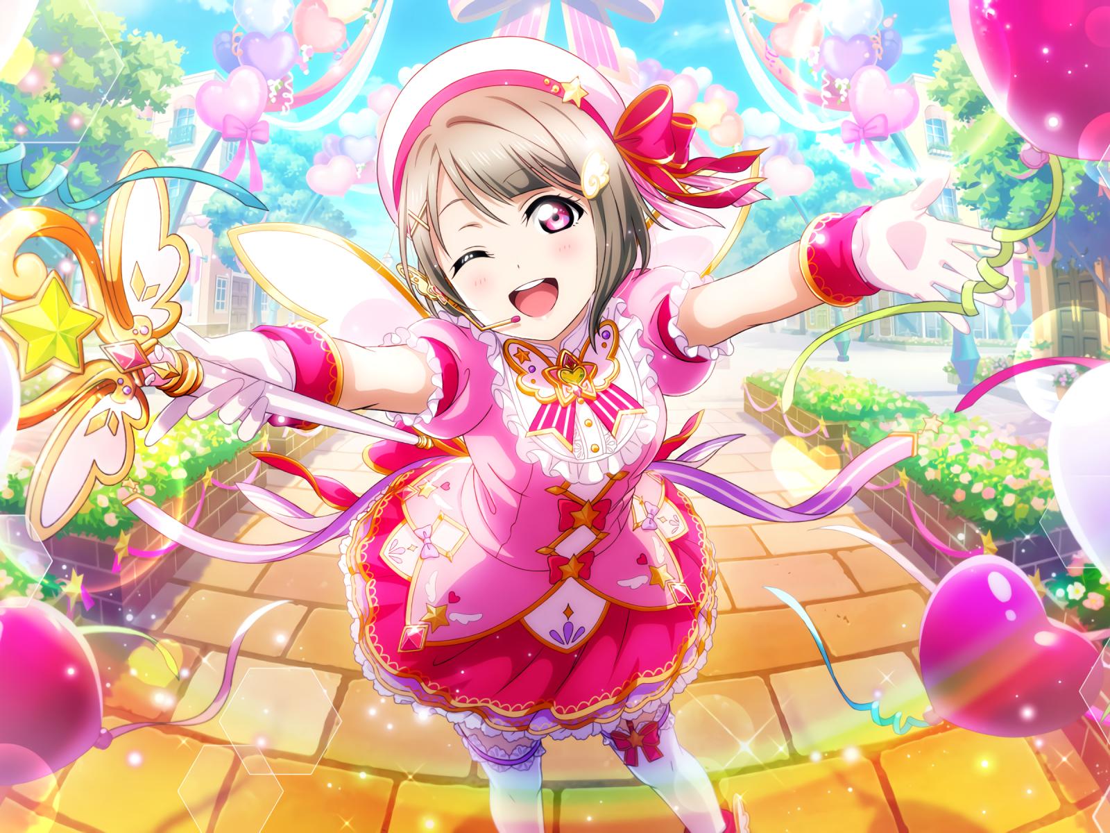 Wallpaper Anime girl in a pink dress with balls