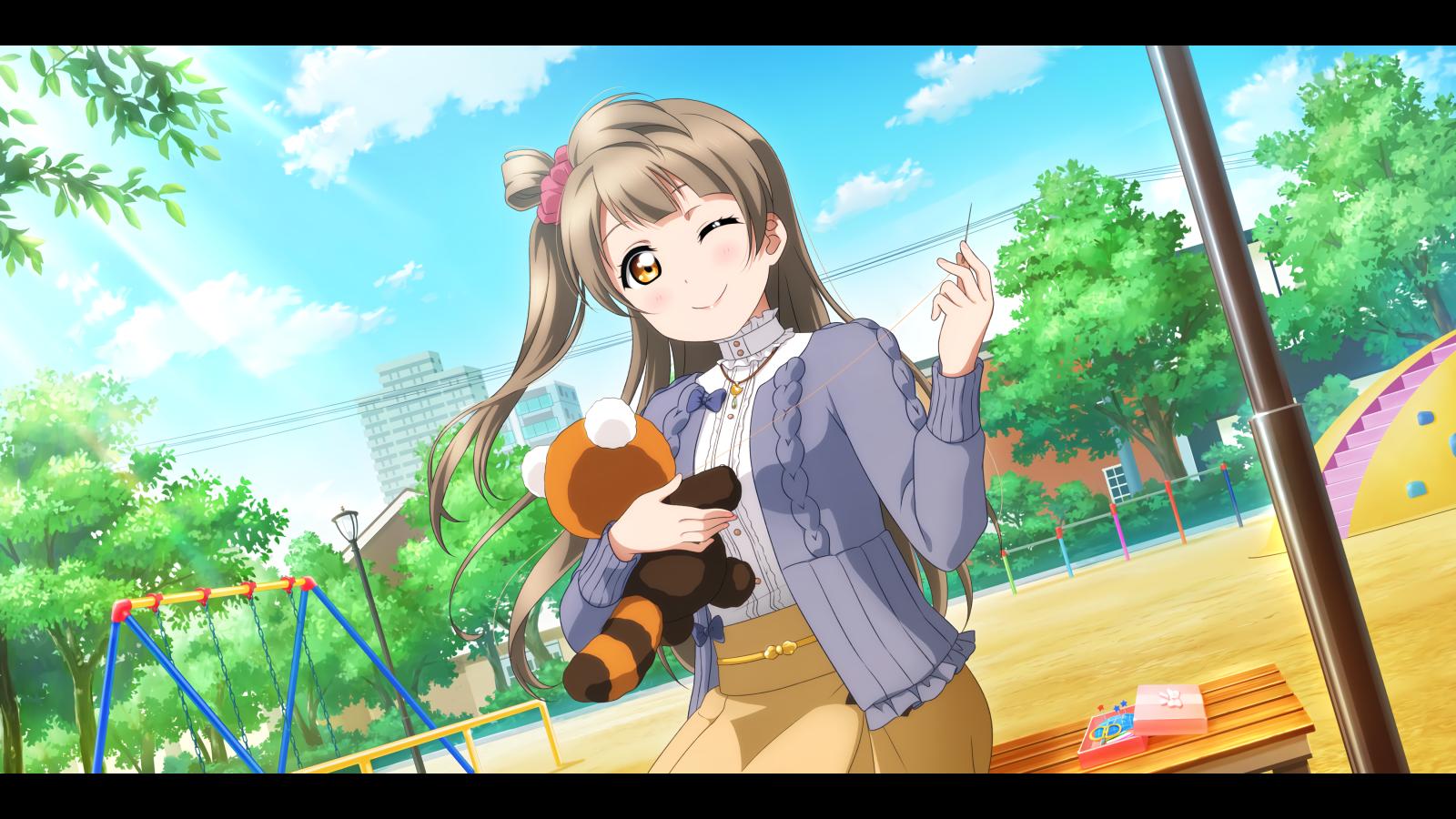 Wallpaper Anime girl sews a toy on the bench