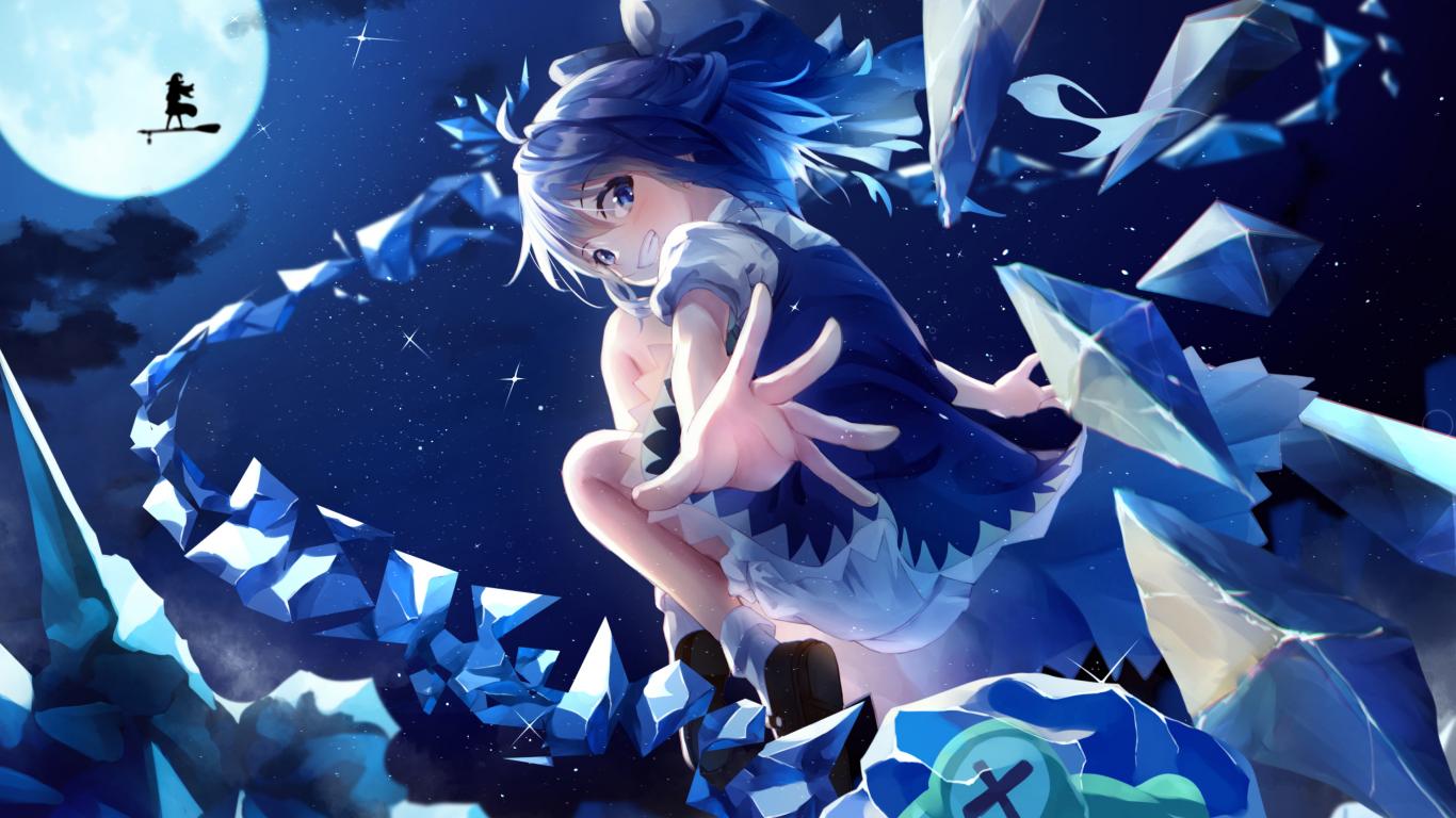 Wallpaper Anime girl with blue hair throws crystals