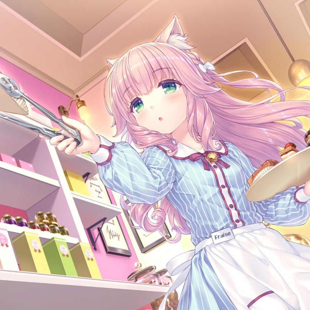 Wallpaper Anime girl with pink hair in the kitchen