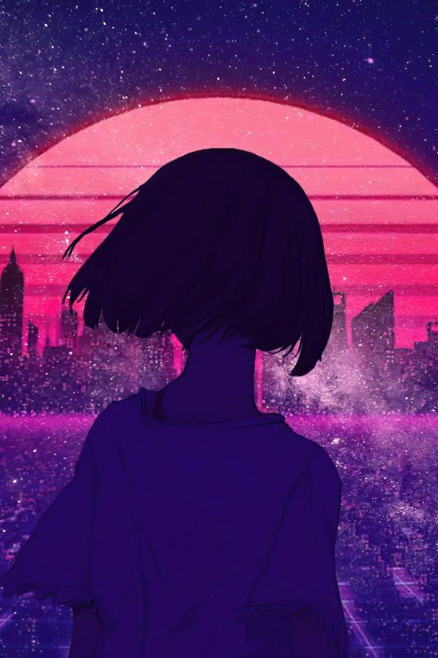 Wallpaper Anime girl on the background of the night metropolis