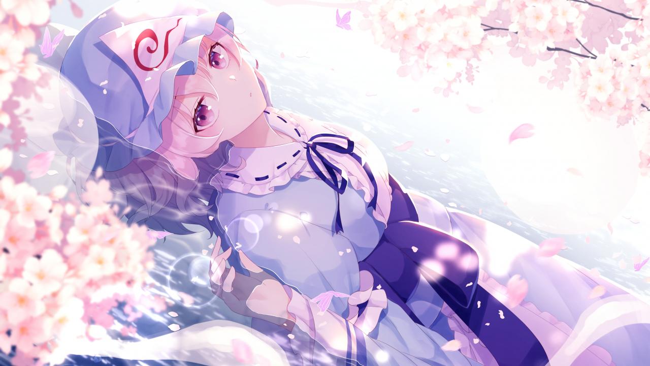 Wallpaper Anime girl on a background of white flowers