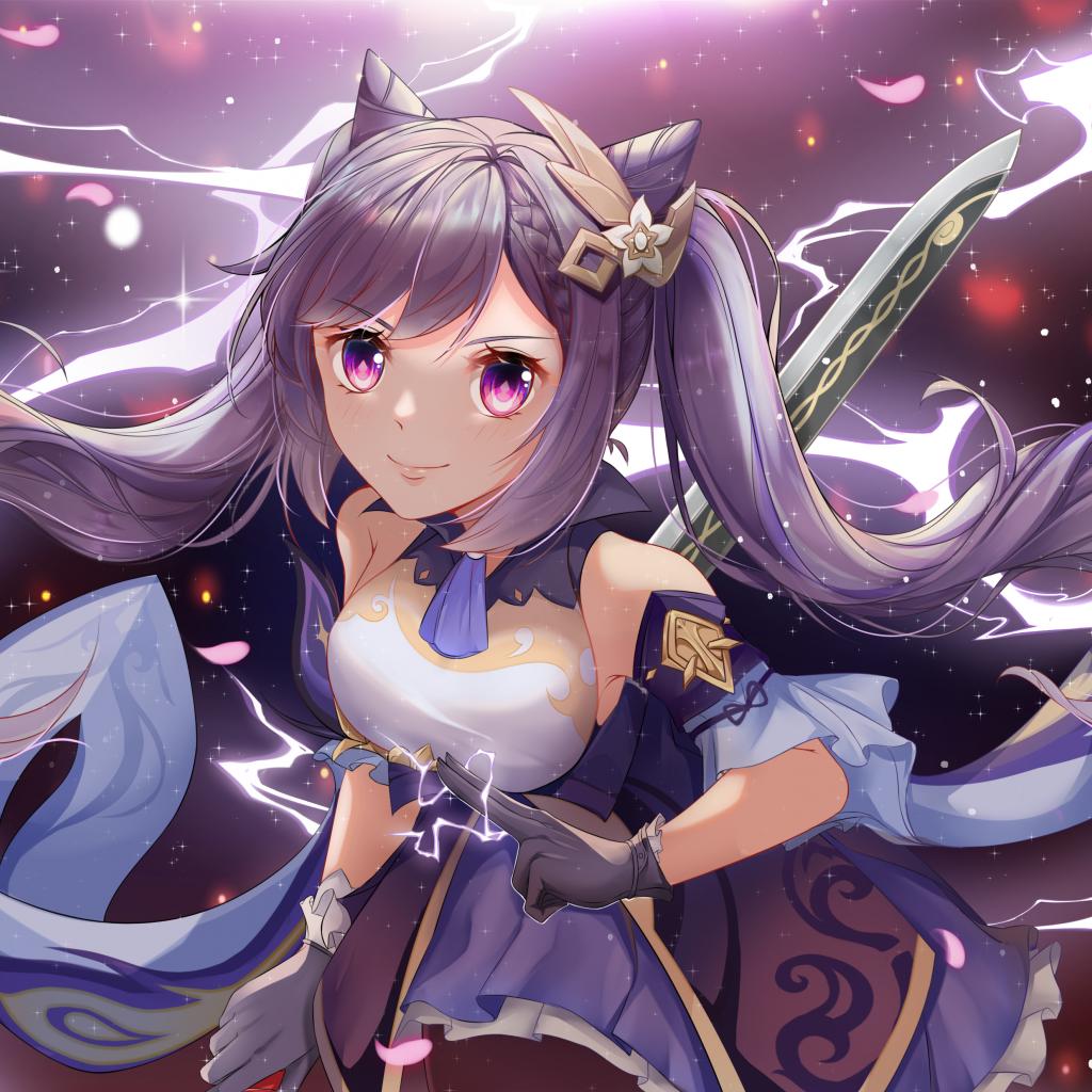 Wallpaper Anime girl with lilac hair and a sword in his hands