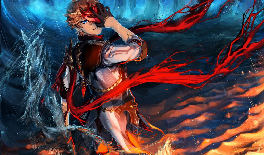 Wallpaper Anime man covered his face with hand in water