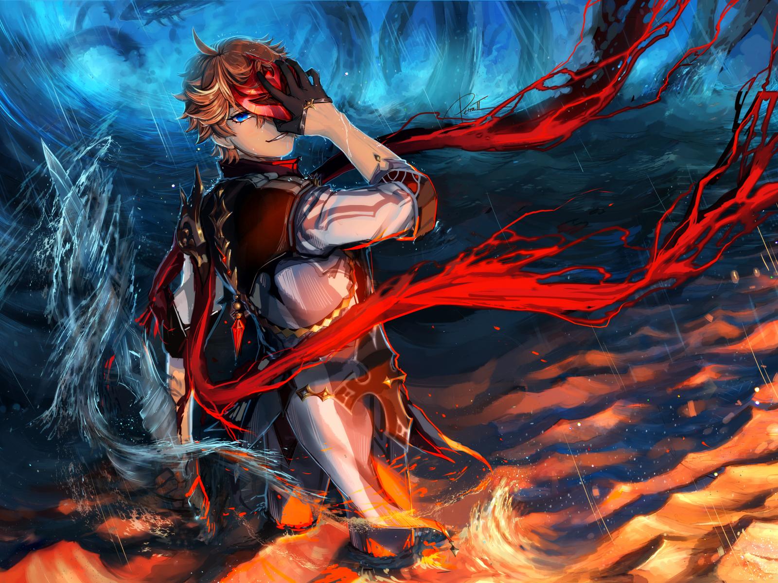 Wallpaper Anime man covered his face with hand in water