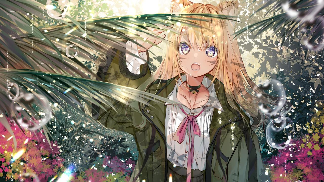 Wallpaper Anime girl in green fern leaves