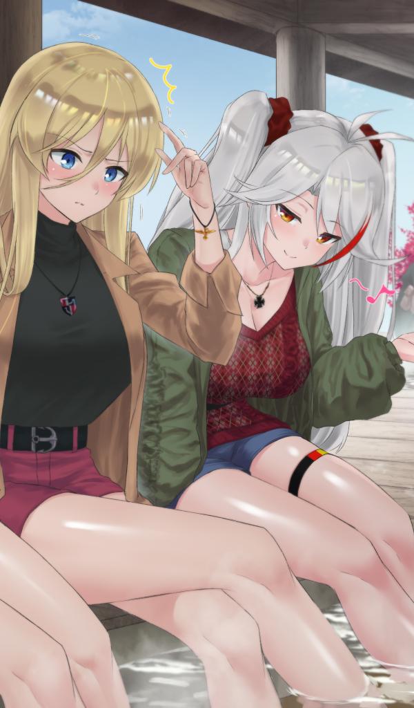 Wallpaper Three girls at the fountain anime Azur Lane