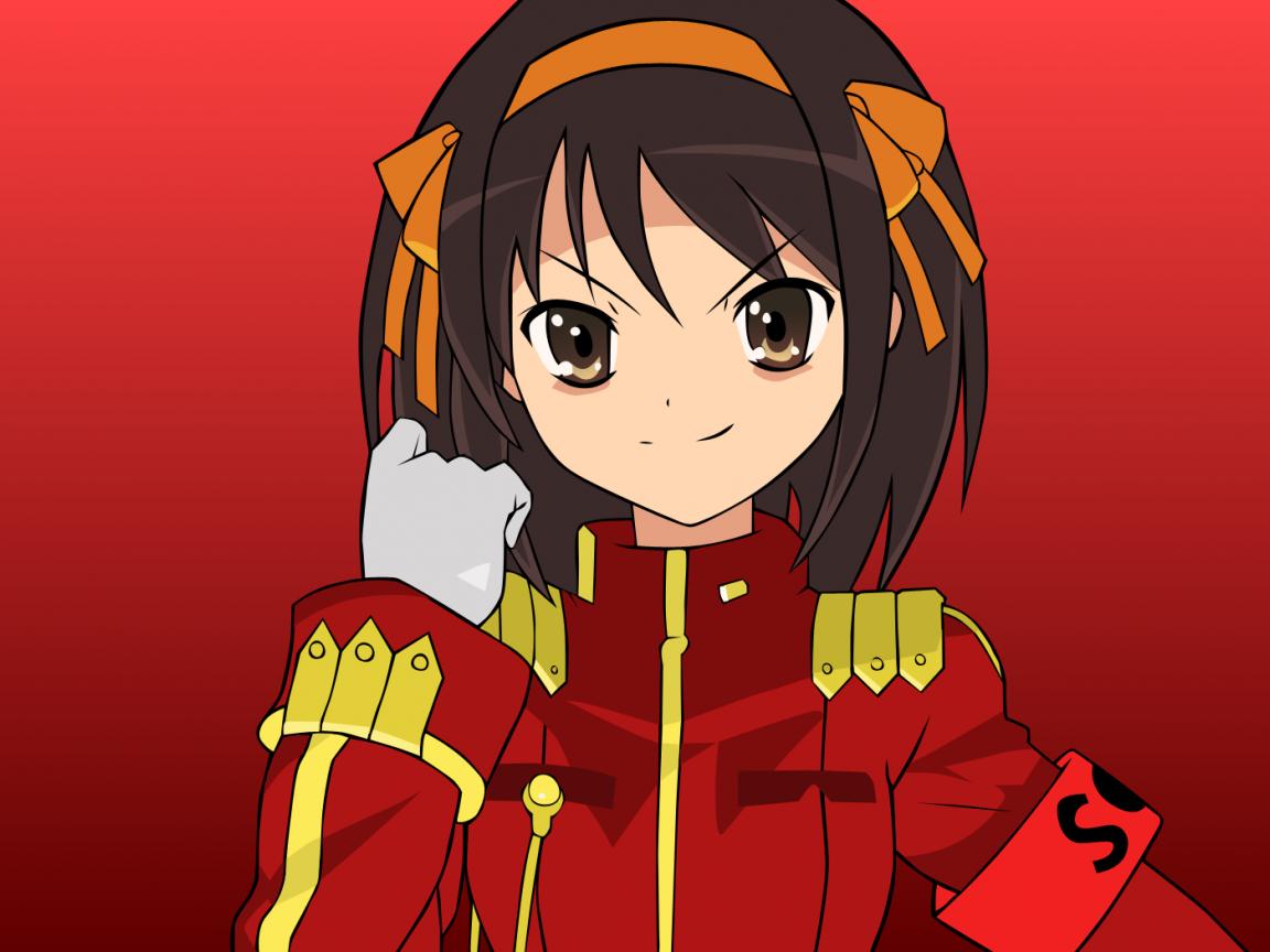 Wallpaper Haruhi Suzumiya on a red background