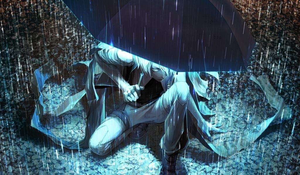 Wallpaper Anime guy hiding from the rain under an umbrella luminous