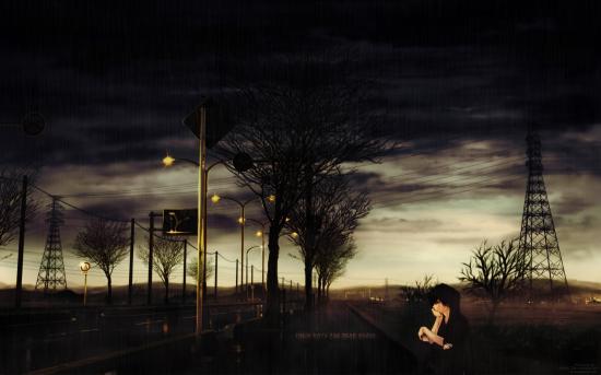Wallpaper Anime sad guy off the road in the rain