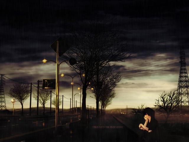 Wallpaper Anime sad guy off the road in the rain